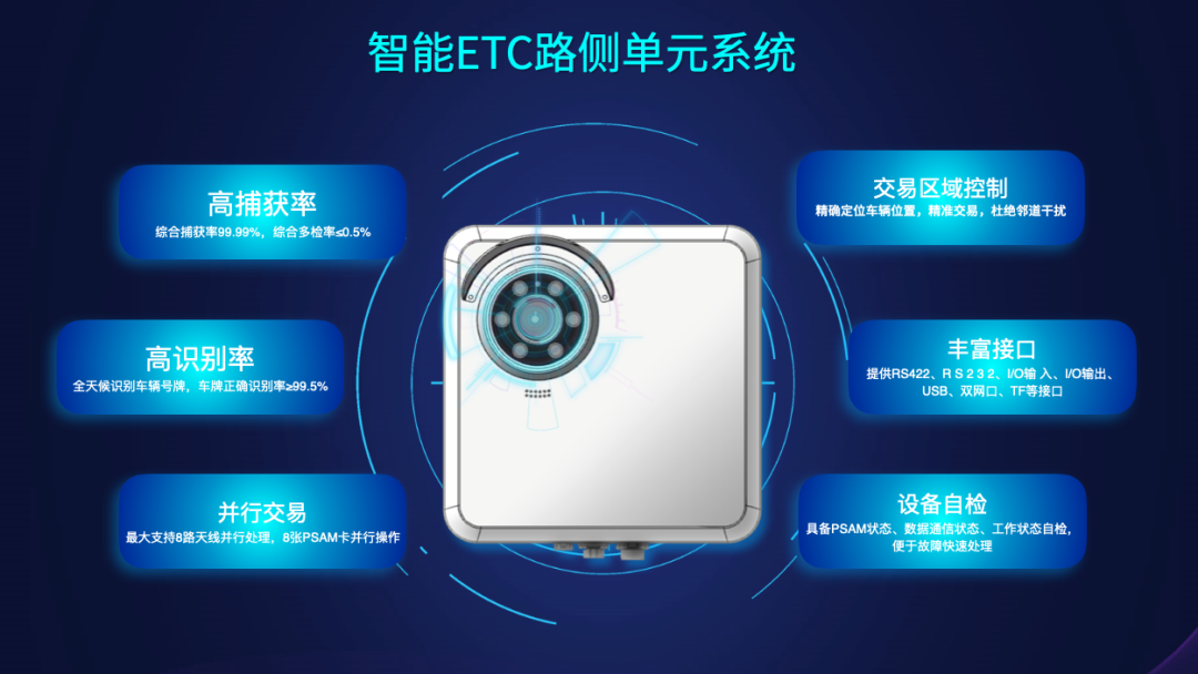 信路威隆重推出智能ETC路側(cè)單元系統(tǒng),該系統(tǒng)是融合視頻、射頻、雷達等多種方式于一體的ETC-RSU系統(tǒng),具有高捕獲率、高識別率、并行交易、交易區(qū)域控制等特點,可應(yīng)用于收費車道、ETC門架、服務(wù)區(qū)匝道等高速公路場景。