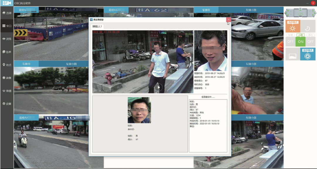 7路攝像頭可同時(shí)采集視野范圍內(nèi)的車輛和人臉信息并上傳,捕獲率≥95%,識(shí)別率≥95%。車輛和人