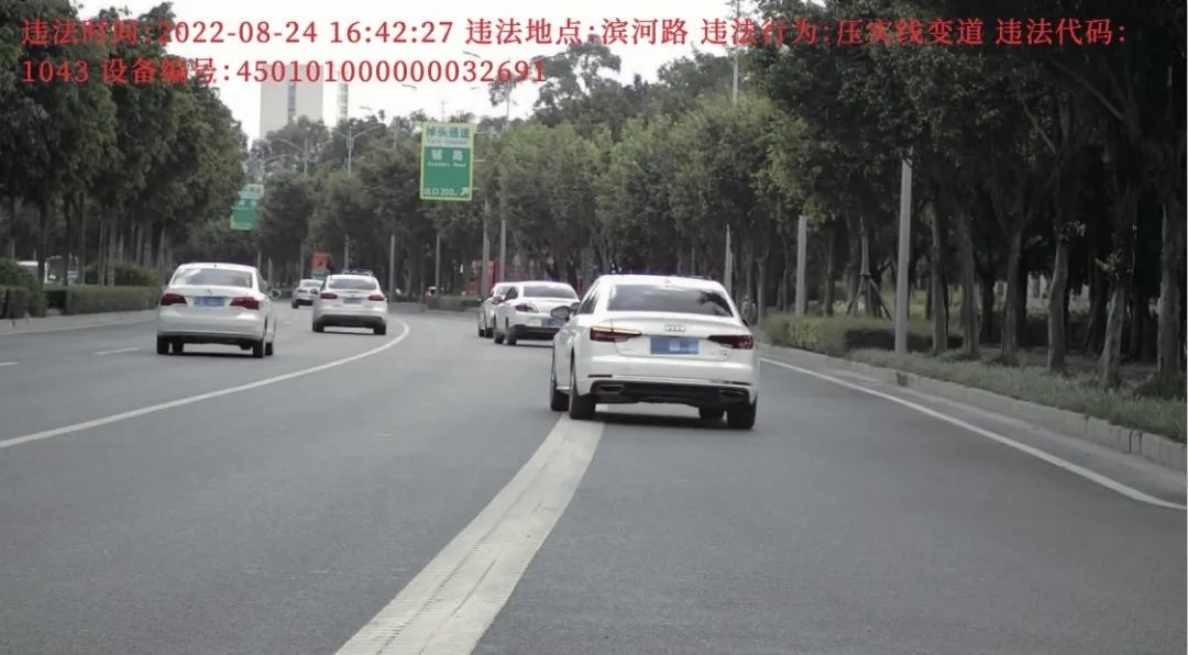 自動(dòng)抓拍壓實(shí)線變道的交通違法行為,生成違法證據(jù)并上傳。