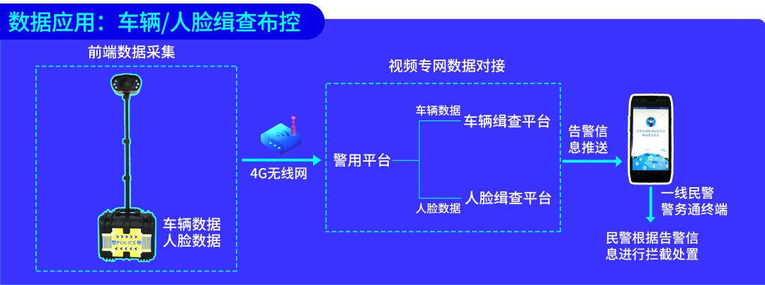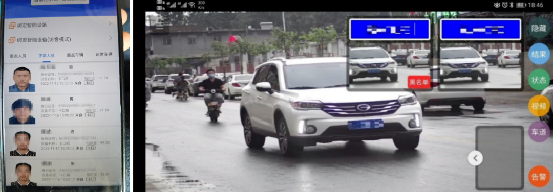 在布控點前200-500米處布設(shè)設(shè)備,車輛黑名單下發(fā)設(shè)備,設(shè)備自動檢測通行車輛車牌號并與黑名單對比匹配,一旦發(fā)現(xiàn)黑名單車輛,立即在手機端APP發(fā)出語音和振動警報,具有實時性高,延遲低的優(yōu)勢。