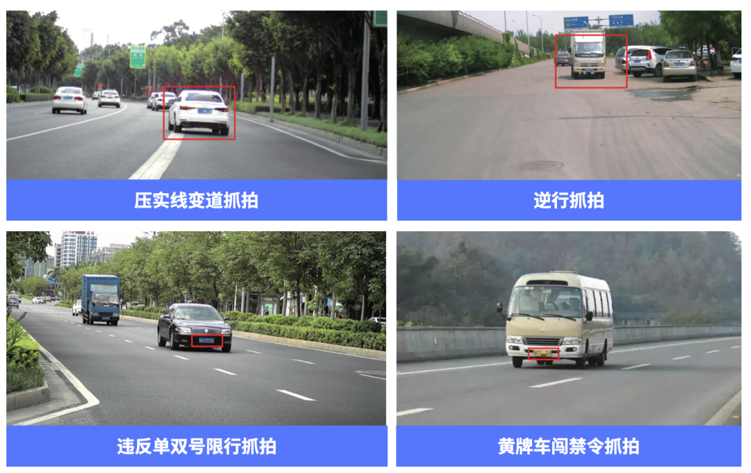 自動抓拍通行車輛壓實線變道、車輛逆行、違法單雙號限行出行、黃牌車闖禁令的交通違法行為,生成符合要求的違法證據(jù),并實時上傳到公安集指平臺。