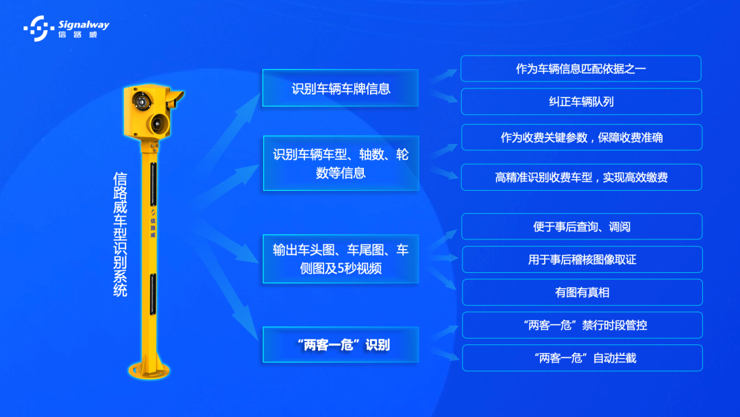 ? 信路威車型識別系統(tǒng),能夠根據(jù)黃果樹瀑布收費站現(xiàn)場使用需求,通過99%以上車型識別準(zhǔn)確率,高精準(zhǔn)地識別車輛號牌、車型、軸數(shù)、輪數(shù)及車頭、車側(cè)、車尾特征信息,并輸出車輛車頭、車側(cè)、車尾三張?zhí)卣鲌D片及過車視頻。