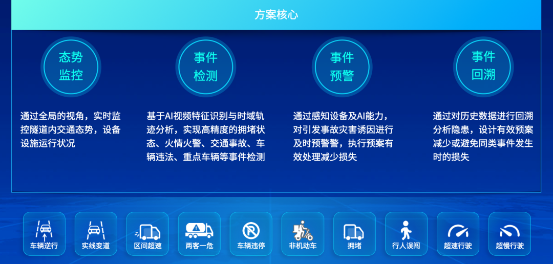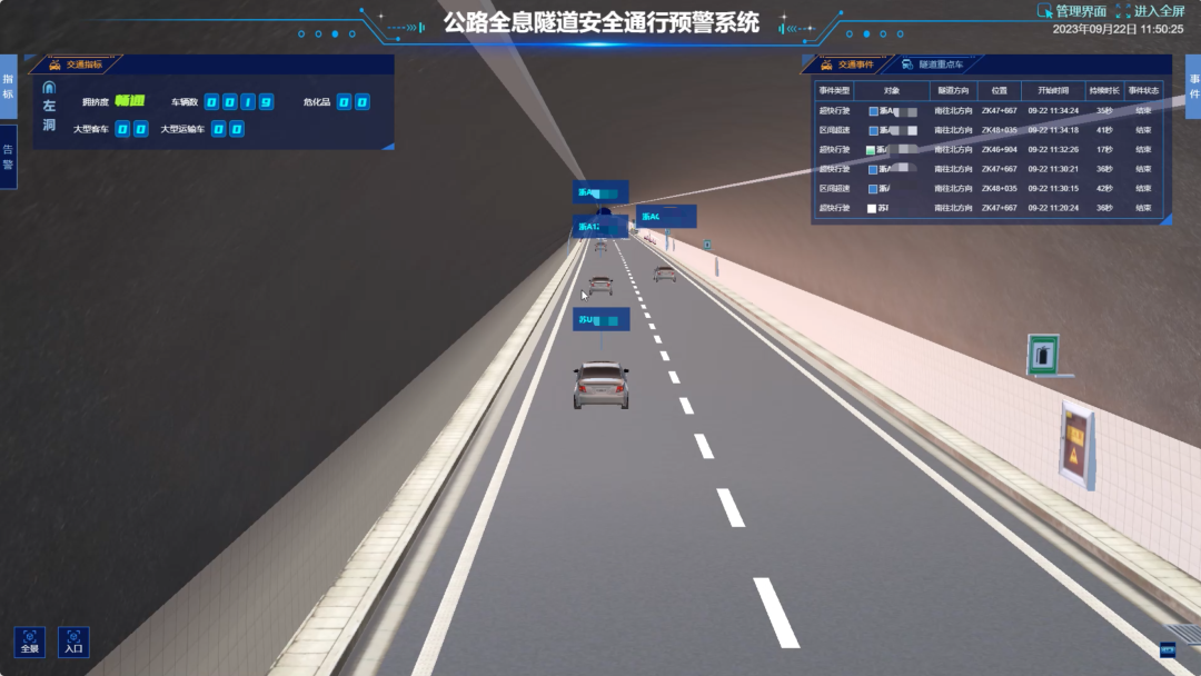 信路威公路全息隧道安全通行預(yù)警系統(tǒng),是一套將高精地圖和三維模型相結(jié)合的可視化應(yīng)用系統(tǒng),基于數(shù)字孿生技術(shù),將交通實(shí)景和事件信息在系統(tǒng)上進(jìn)行數(shù)字重構(gòu),提供與真實(shí)場(chǎng)景時(shí)空基準(zhǔn)一致的數(shù)字化映射。在隧道中,通過布設(shè)多個(gè)智慧基站,將分段、獨(dú)立的感知數(shù)據(jù)進(jìn)行關(guān)聯(lián)融合形成全域信息。同時(shí),將數(shù)據(jù)模型和智能算法相結(jié)合,依托全息感知網(wǎng),對(duì)全隧道交通數(shù)據(jù)進(jìn)行匯聚、交互、交換轉(zhuǎn)發(fā)等處理,實(shí)現(xiàn)事件識(shí)別、統(tǒng)計(jì)分析和處理加工,從而構(gòu)建隧道數(shù)字孿生底座。基于數(shù)字孿生底座可以建設(shè)多個(gè)數(shù)字化應(yīng)用場(chǎng)景,如:提供“兩客一?!钡忍胤N車輛全域跟蹤,實(shí)時(shí)孿生車輛的位置、速度等信息,并可以對(duì)隧道內(nèi)違規(guī)停車、變道、逆行、超速等多種交通事件信息的實(shí)時(shí)動(dòng)態(tài)孿生,實(shí)現(xiàn)對(duì)隧道的智能化、數(shù)字化管理。信路威公路全息隧道安全通行預(yù)警系統(tǒng),通過全息可視化的能力,讓隧道的監(jiān)控有空間感、更直觀,AI賦能推動(dòng)隧道安全管理更智慧!