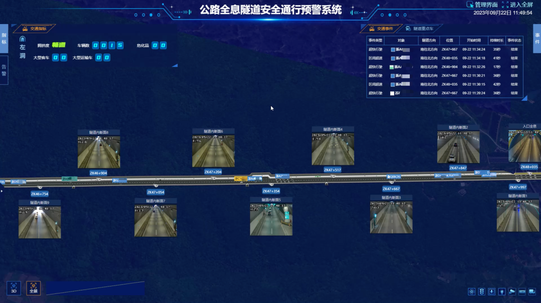 據(jù)統(tǒng)計(jì),目前新嶺隧道日均車流量近9萬(wàn)輛次,節(jié)假日高峰流量峰值可達(dá)14萬(wàn)輛次,隧道安全管控形勢(shì)十分嚴(yán)峻。為落實(shí)杭州亞運(yùn)會(huì)、亞殘運(yùn)會(huì)高速公路通行保暢任務(wù),浙江省交通集團(tuán)高速公路杭州南管理中心(簡(jiǎn)稱杭州南管理中心)聯(lián)合信路威緊扣省廳工作要求,開發(fā)建設(shè)了新嶺隧道數(shù)字孿生全息感知平臺(tái),為高速公路道路保暢提供AI數(shù)字化、智能化支持,保障新嶺隧道安全暢通,并于杭州亞運(yùn)會(huì)前正式上線使用,有效提升高速公路的運(yùn)營(yíng)管理、服務(wù)能力和智能化水平,為杭州亞運(yùn)會(huì)“保駕護(hù)航”。