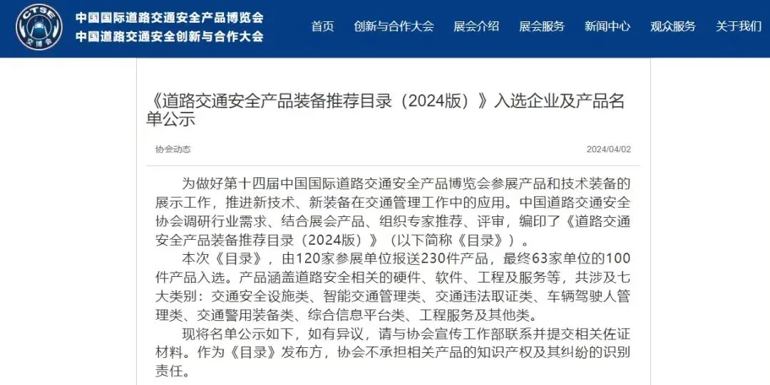 交博會期間,中國道路交通安全協(xié)會發(fā)布了《道路交通安全產(chǎn)品裝備推薦目錄(2024版)》,信路威警用鐵騎車載智能采集系統(tǒng)、路況預(yù)警系統(tǒng)從120家單位報送的230件產(chǎn)品中脫穎而出,榮耀入選。
