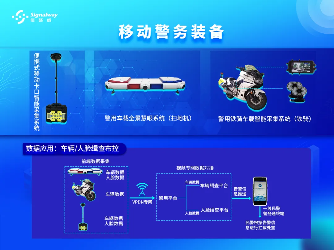 信路威警用車載全景慧眼系統(tǒng)、警用鐵騎車載智能采集系統(tǒng)、便攜式移動卡口智能采集系統(tǒng),以AI視頻技術(shù)為核心,實現(xiàn)視頻監(jiān)控、車輛識別、人臉識別、違停取證、緝查布控等業(yè)務(wù)功能,致力于為一線交警提供移動便攜、智慧執(zhí)法的科技產(chǎn)品,助力科技強(qiáng)警、公安信息化建設(shè)!