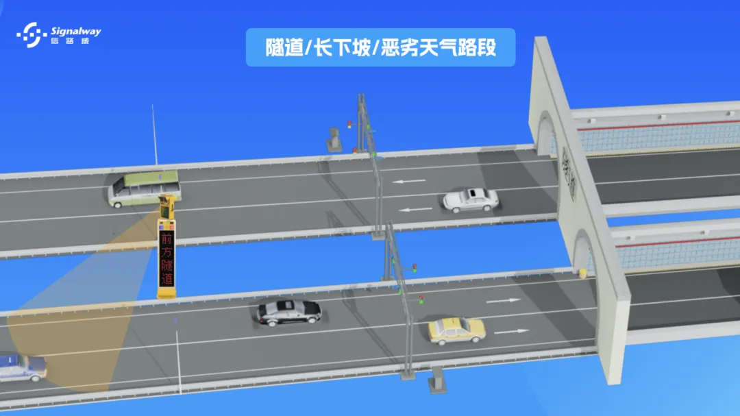 信路威”高速哨兵“系統(tǒng)主要應(yīng)用于高速公路上分流匝道口、合流匝道口、收費(fèi)站入口、隧道/長下坡路段/惡劣天氣影響路段等行車事故高發(fā)部位,通過其高效的監(jiān)測和預(yù)警功能,實(shí)時(shí)掌握交通狀況,及時(shí)發(fā)現(xiàn)和處理交通安全隱患。