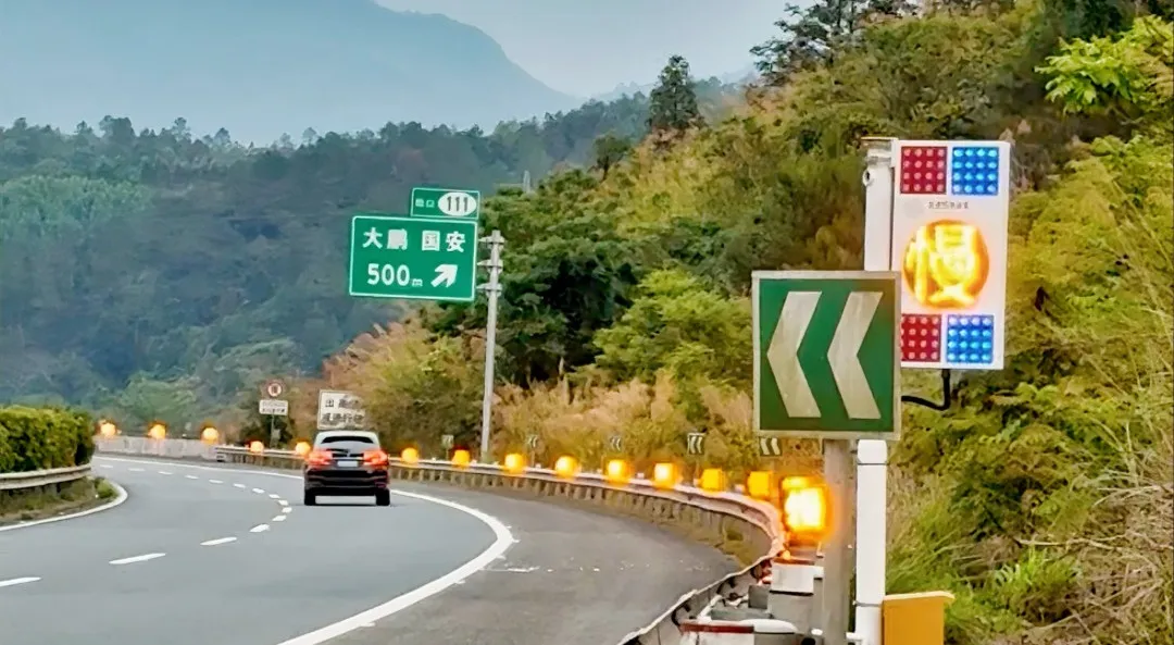 誘導(dǎo)衛(wèi)士作為入選交通運(yùn)輸部第二批高速公路監(jiān)測(cè)預(yù)警應(yīng)用示范揭榜項(xiàng)目中的核心模塊產(chǎn)品,獲得國(guó)家級(jí)權(quán)威認(rèn)可。目前已在梧柳高速等重點(diǎn)路段試點(diǎn)應(yīng)用?!罢T導(dǎo)衛(wèi)士可以通過(guò)爆閃警示燈、誘導(dǎo)燈、簡(jiǎn)易文字提醒與擴(kuò)音主動(dòng)提示動(dòng)態(tài)路況變化。司乘人員在事故多發(fā)區(qū)域、夜間、雨霧天等能見(jiàn)度低條件下,也能清晰接收道路走向指引?!蔽嘀葸\(yùn)營(yíng)公司平南分公司養(yǎng)護(hù)工程師黃永杰一邊檢查著誘導(dǎo)衛(wèi)士一邊介紹道。相比傳統(tǒng)固定式設(shè)備,誘導(dǎo)衛(wèi)士采用模塊化設(shè)計(jì),可快速部署于邊坡塌方、急彎陡坡等高速公路風(fēng)險(xiǎn)點(diǎn)。